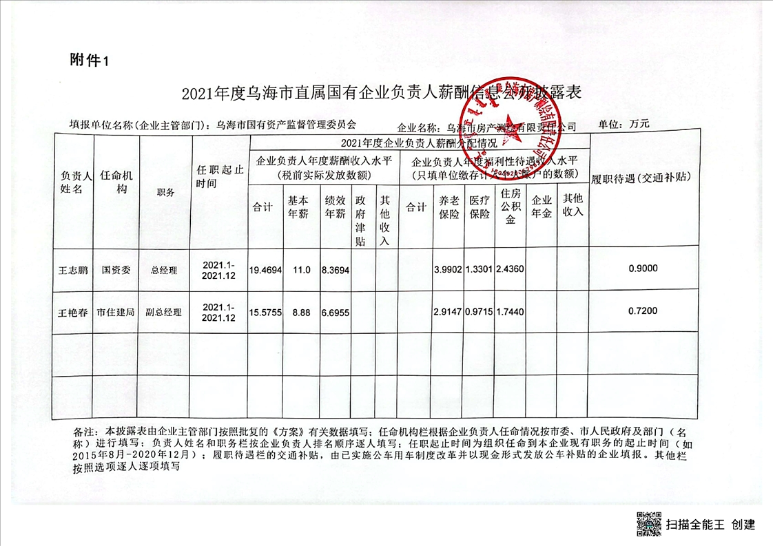 烏海市房產(chǎn)測(cè)繪有限責(zé)任公司2021年度企業(yè)負(fù)責(zé)人薪酬信息公開披露表