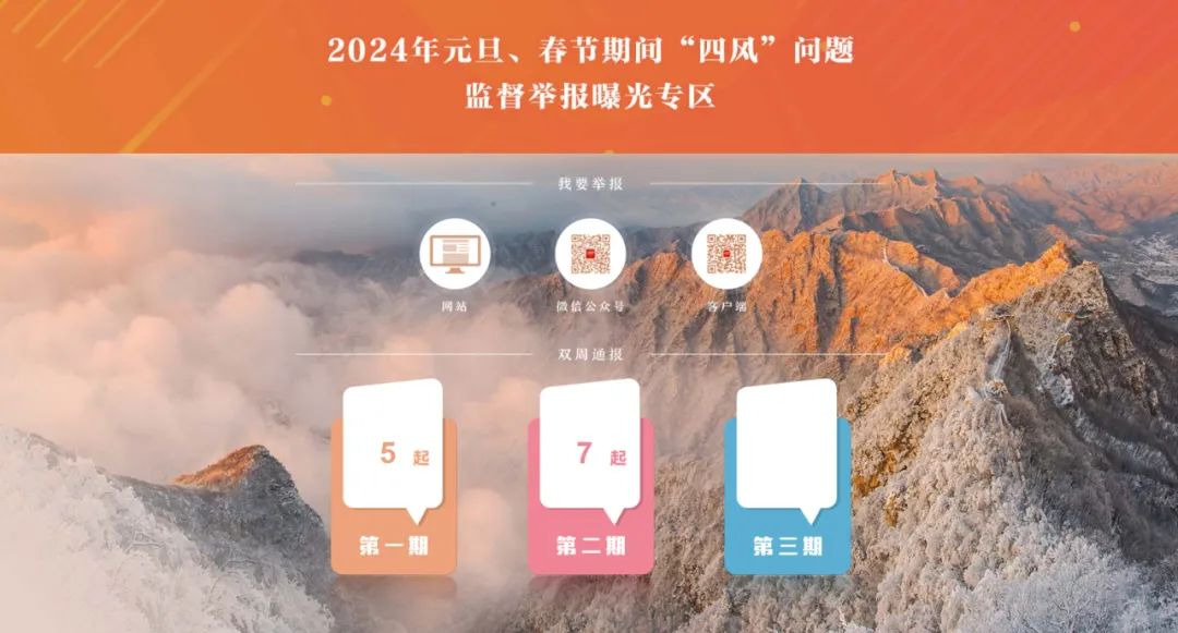 春節(jié)臨近,“四風(fēng)”問題易發(fā)多發(fā)。中央紀(jì)委國家監(jiān)委網(wǎng)站推出“2024年元旦、春節(jié)期間‘四風(fēng)’問題監(jiān)督舉報(bào)曝光專區(qū)”,加大典型案例通報(bào)曝光力度。紀(jì)檢監(jiān)察機(jī)關(guān)強(qiáng)化監(jiān)督執(zhí)紀(jì),對(duì)包括違規(guī)吃喝在內(nèi)的“四風(fēng)”頑疾嚴(yán)查快處,公開通報(bào)典型案例,形成有力震懾,營造風(fēng)清氣正的節(jié)日氛圍。