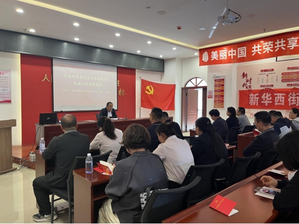 活動(dòng)在莊嚴(yán)的國(guó)歌聲中拉開序幕,完成規(guī)定動(dòng)作后,參會(huì)同志認(rèn)真學(xué)習(xí)了《內(nèi)蒙古自治區(qū)全方位建設(shè)模范自治區(qū)促進(jìn)條例》、習(xí)近平總書記關(guān)于加強(qiáng)和改進(jìn)民族工作的重要論述、黨的民族理論政策、“五句話”的事實(shí)和道理、《中華人民共和國(guó)民族區(qū)域自治法》《內(nèi)蒙古自治區(qū)促進(jìn)民族團(tuán)結(jié)進(jìn)步條例》《中國(guó)共產(chǎn)黨內(nèi)蒙古歷史》(第一卷)等內(nèi)容。新華西街道辦事處黨工委常務(wù)主任高武鴻以《習(xí)近平總書記關(guān)于加強(qiáng)和改進(jìn)民族工作重要思想》為題開展了宣講,部分黨員代表就鑄牢中華民族共同體意識(shí)進(jìn)行了專題研討。