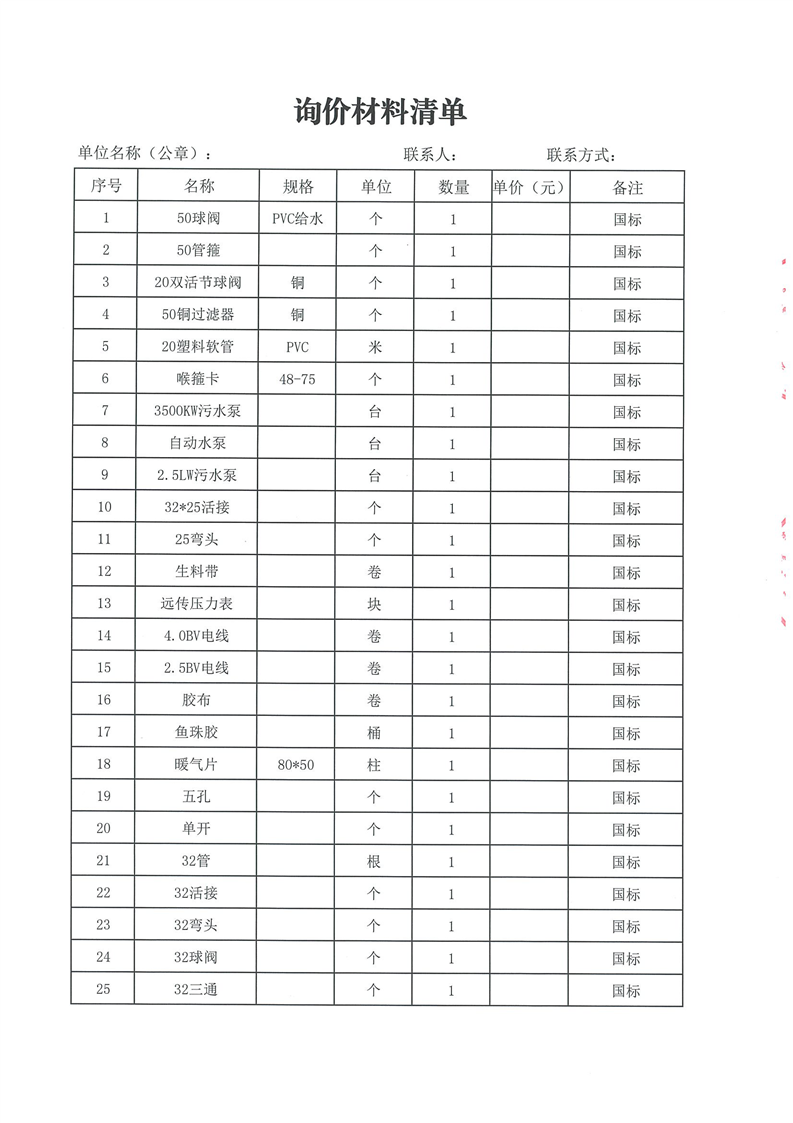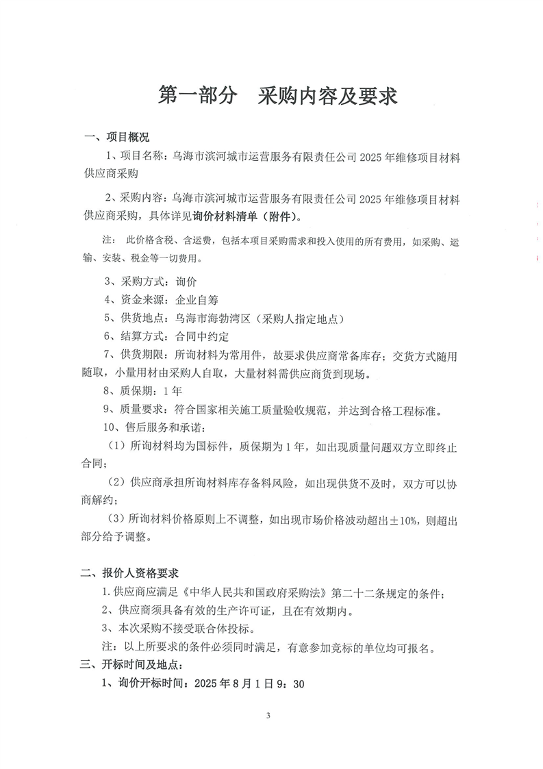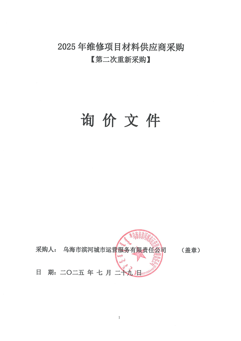 2025年維修項(xiàng)目材料供應(yīng)商采購(gòu)【第二次重新采購(gòu)】詢價(jià)文件