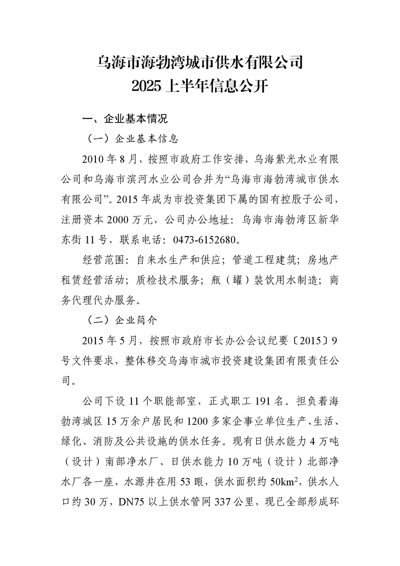 - 2025-10-22烏海市海勃灣城市供水有限公司2025年第三季度信息公開