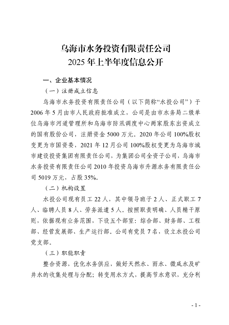 - 2025-04-22烏海市水務(wù)投資有限責(zé)任公司2025年第一季度信息公開