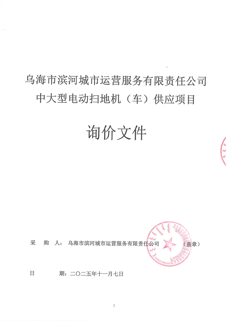 烏海市濱河城市運(yùn)營(yíng)服務(wù)有限責(zé)任公司中大型電動(dòng)掃地機(jī)(車)供應(yīng)項(xiàng)目詢價(jià)文件