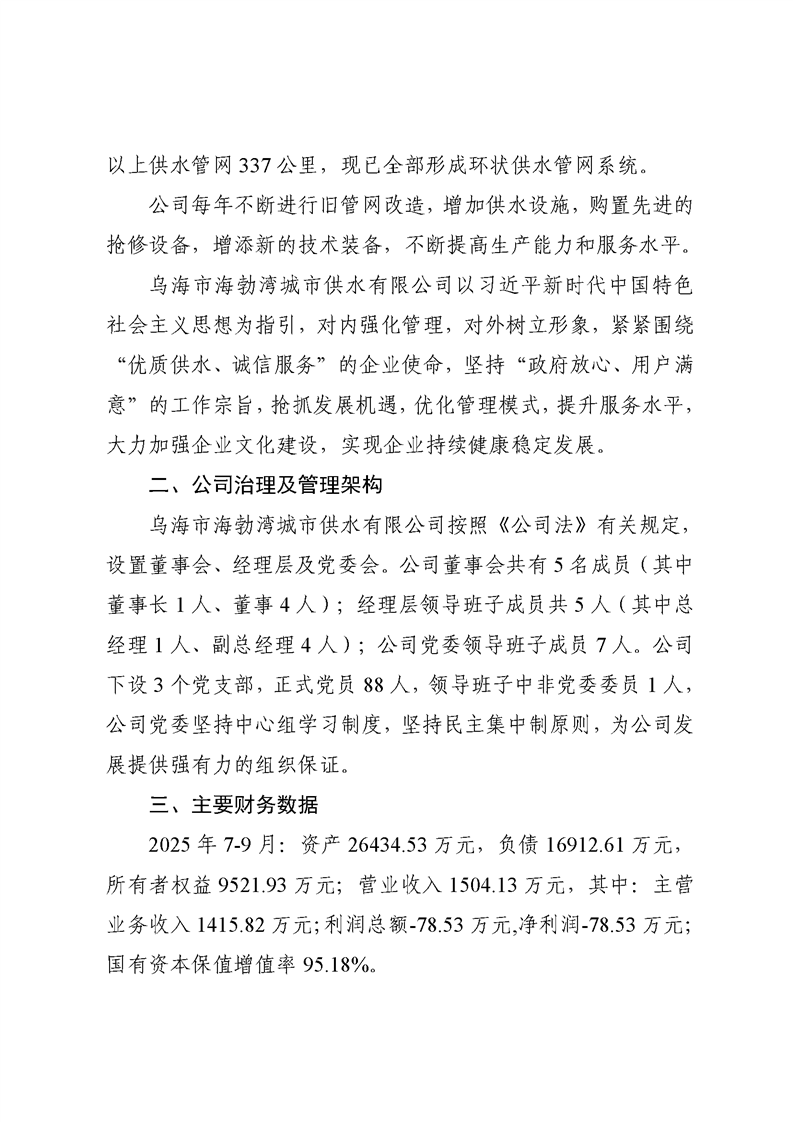 - 2025-03-10烏海市海勃灣城市供水有限公司2024年度信息公開(kāi)報(bào)告