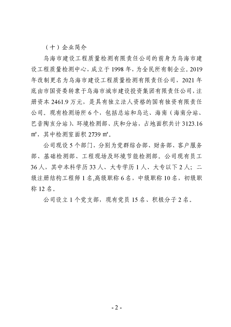 - 2024-10-10烏海市建設(shè)工程質(zhì)量檢測(cè)有限責(zé)任公司2024年三季度信息公開(kāi)