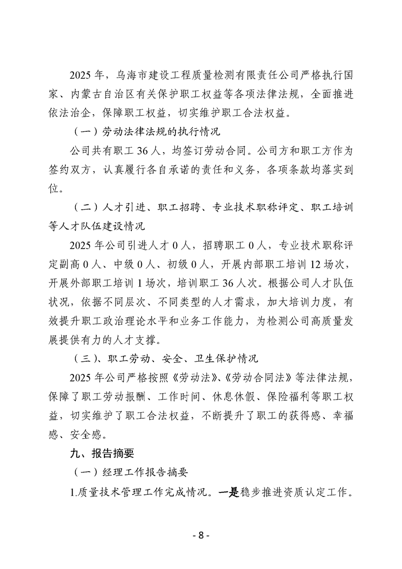- 2025-03-10烏海市建設(shè)工程質(zhì)量檢測(cè)有限責(zé)任公司2024年度信息公開(kāi)報(bào)告